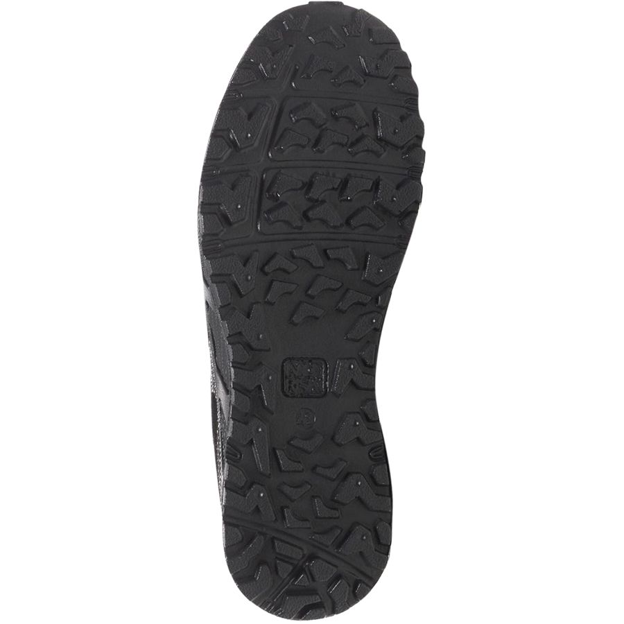 Schaft: Schwarzes, gelochtes Mikrofasermaterial, Spitzenschutz, Textilfutter, gepolsterter Schaftrand, gepolsterte Lasche, Klettverschlüsse mit einem Reflexstreifen, Temperatur ausgleichende, korrosionsfreie und nicht magnetische Zehenschutz-Kunststoffkappe.