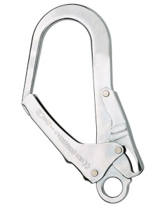 Sicherheitshaken Vertiqual aus Stahl. Doppelhebelhaken, Bruchlast Hauptachse 25 kN, Ø 55 mm Öffnungsweite. Gewicht 505 g.
